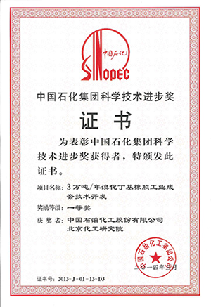图2 3万吨/年溴化丁基橡胶工业成套技术开发获得中国石化科技进步一等奖