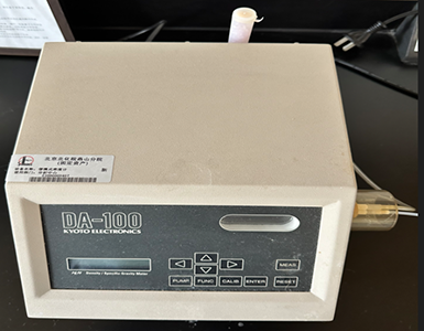 配备京都电子DA-100型数字密度仪,内置泵可干燥测量池,测量池校正使用干燥空气和纯水,不需复杂的计算公式。密度测量范围:0-3 g/cm3,密度精度:0.001 g/cm3,恒温控制,温度范围:15-40°C,重复性:0.001 g/cm3,具有样品少,速度快,操作容易的特点。