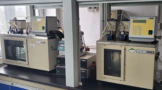 配备劳达黏度测试设备在25℃控温精度为±0.05℃,135℃控温精度为±0.1℃,可自动计时,自动清洗。配备有一系不同毛细管常数的黏度计,可满足ASTM、ISO、GB聚酯、聚烯烃稀溶液黏度测试。